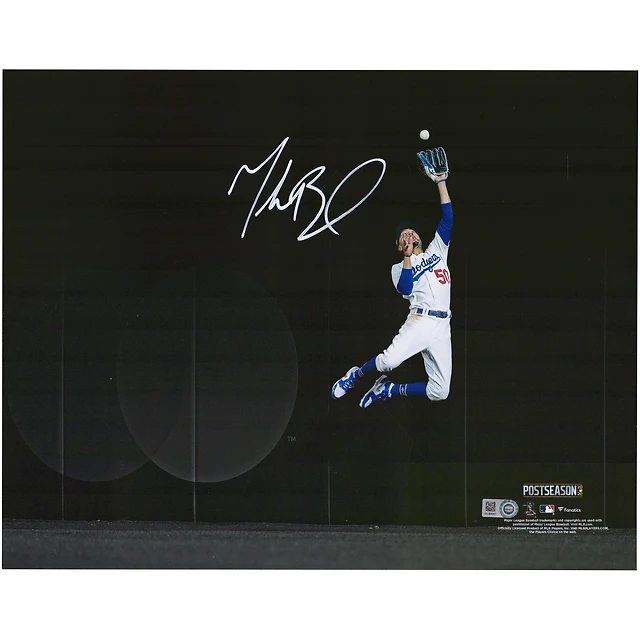Photographie autographiée de 11"x 14" de Mookie Betts des Dodgers de Los Angeles lors du match 7 des NLCS 2020, vol de home run