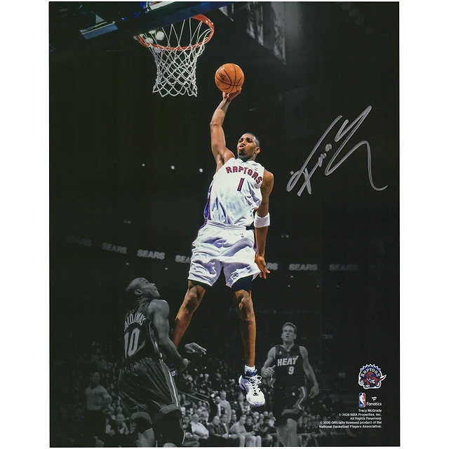 Photographie autographiée de 11"x 14" de Tracy McGrady des Toronto Raptors lors du match du Dunk contre le Miami Heat