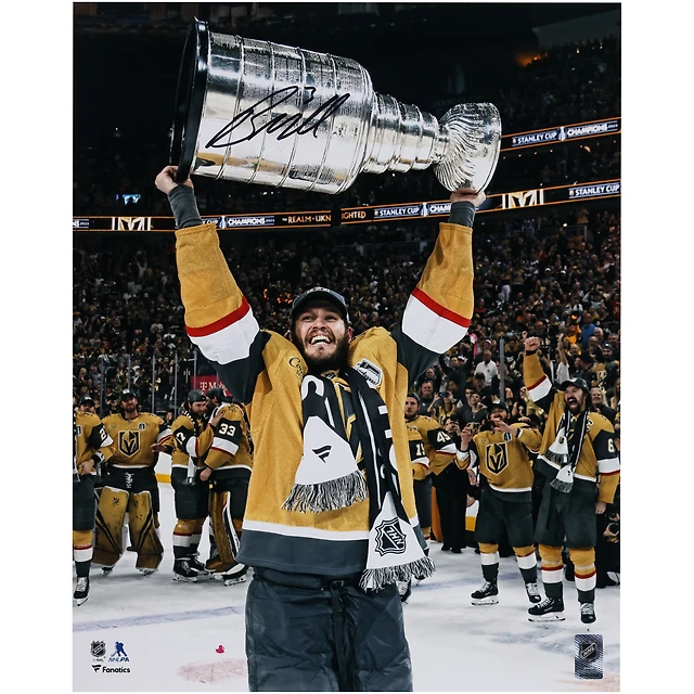 Photographie autographiée de 16" x 20" de Brayden McNabb, champion de la Coupe Stanley 2023, lors de la levée de la Coupe