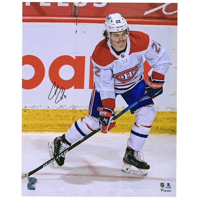 Photographie autographiée de 16" x 20" de Cole Caufield pour ses débuts avec les Canadiens de Montréal dans la LNH