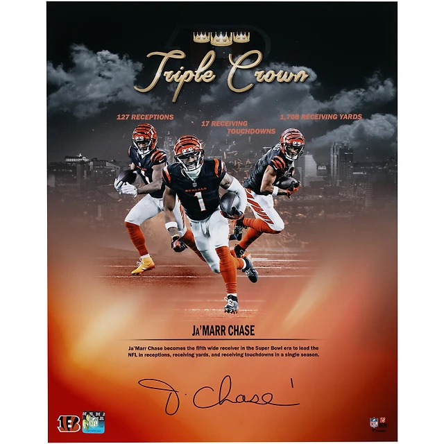 Photographie autographiée de 16" x 20" de Ja'Marr Chase Cincinnati Bengals, Triple Crown Collage 2024