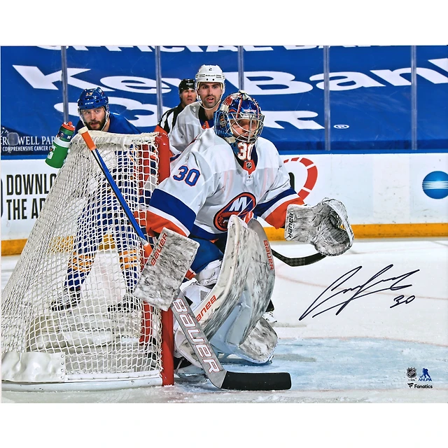 Photographie autographiée de 16" x 20" du maillot blanc des Islanders de New York par Ilya Sorokin