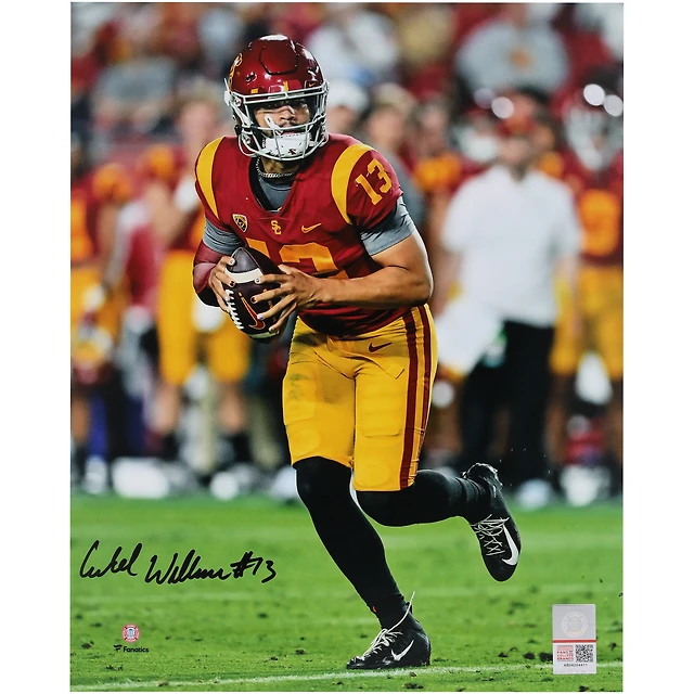 Photographie autographiée de 20,3 x 25,4 cm de Caleb Williams USC Trojans courant avec un maillot rouge