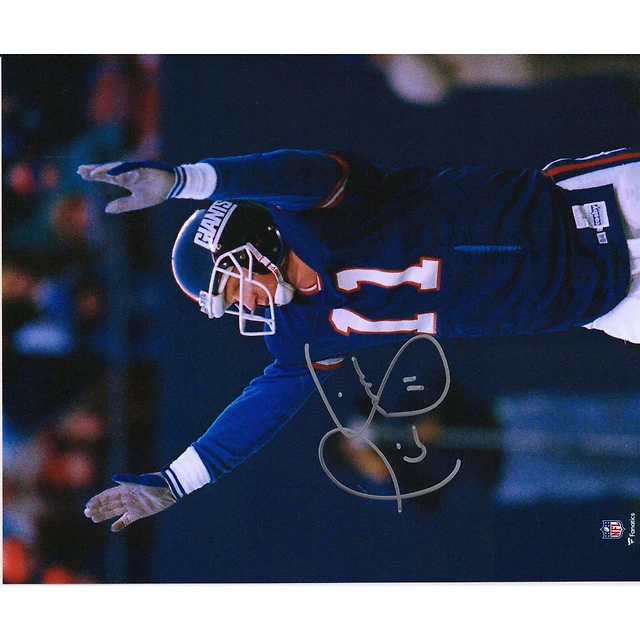 Photographie autographiée de 20,3 x 25,4 cm de Phil Simms, New York Giants, bras levés, célébrant