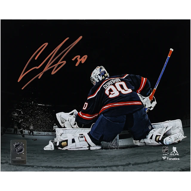 Photographie autographiée de 8" x 10" de Ilya Sorokin des Islanders de New York, montrant un arrêt