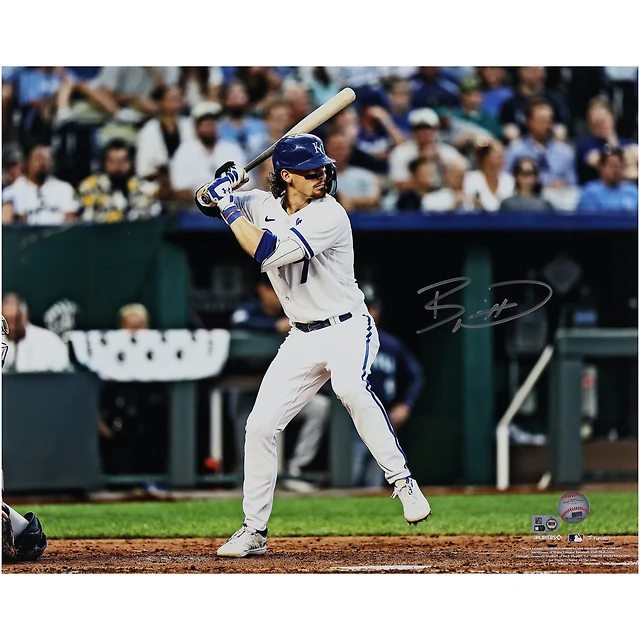 Photographie autographiée de Bobby Witt Jr. des Royals de Kansas City, maillot blanc, position de frappe, 16" x 20"