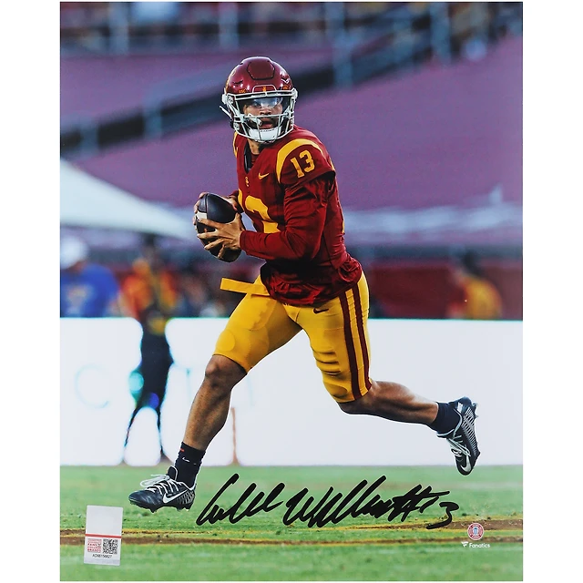 Photographie autographiée de Caleb Williams USC Trojans lors du Scramble Red Jersey de 20,3 x 25,4 cm