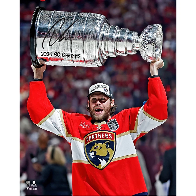 Photographie autographiée de Carter Verhaeghe, champion de la Coupe Stanley 2025, 16" x 20" avec l'inscription « 2025 SC Champs »