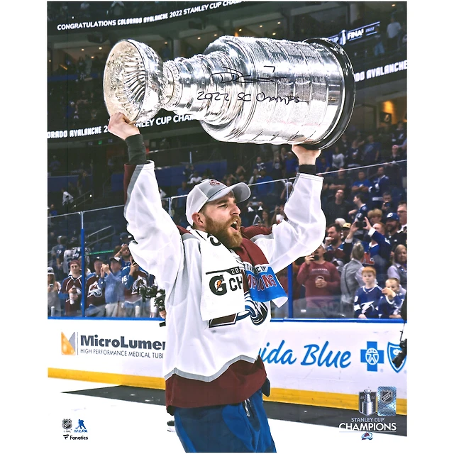 Photographie autographiée de Devon Toews, champion de la Coupe Stanley 2022, 16" x 20" avec l'inscription "2022 SC Champs"