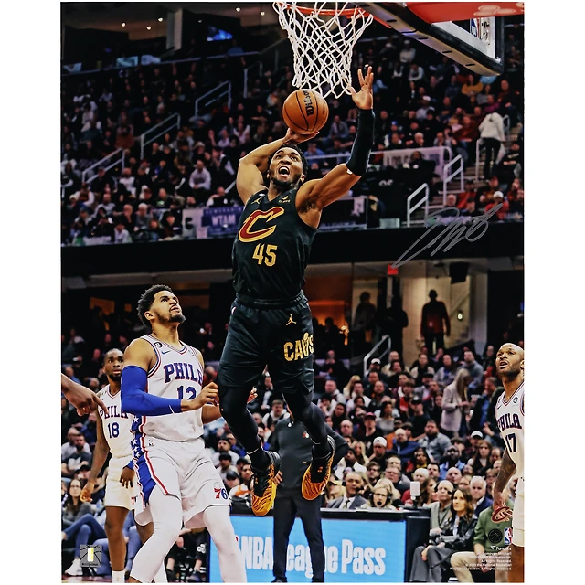 Photographie autographiée de Donovan Mitchell, Dunk de Cleveland Cavaliers, 16" x 20" en noir