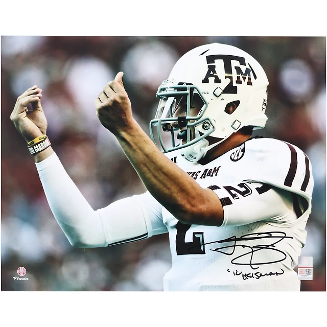 Photographie autographiée de Johnny Manziel, Texas A&M Aggies, 11" x 14" Money Hands, avec l'inscription "12 Heisman"