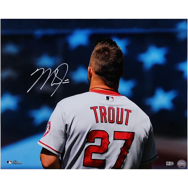 Photographie autographiée de l'hymne national des Los Angeles Angels par Mike Trout, 16" x 20"