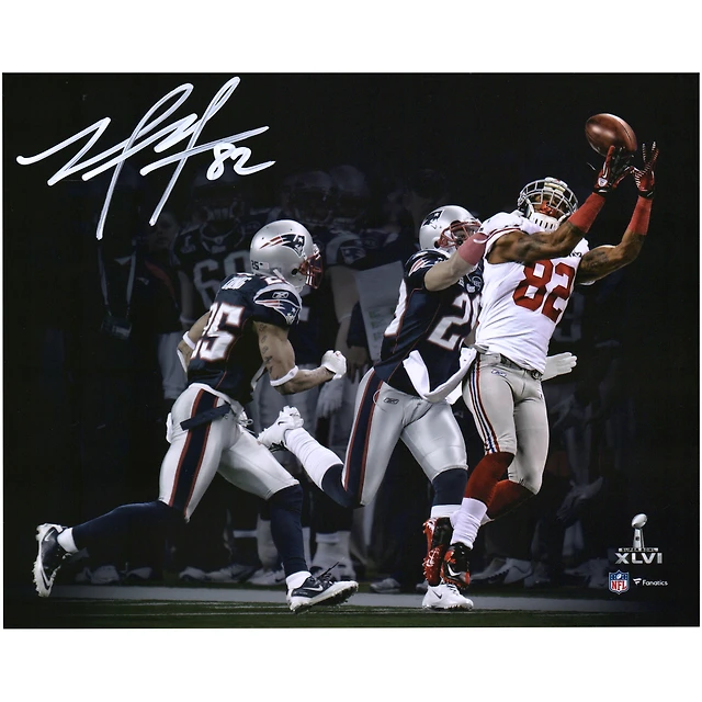 Photographie autographiée de Mario Manningham des New York Giants, 8" x 10", prise de vue en vedette du Super Bowl XLVI