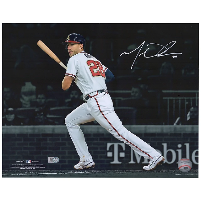 Photographie autographiée de Matt Olson des Braves d'Atlanta, 11'' x 14'', en vedette de la frappe