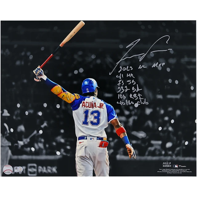 Photographie autographiée de Ronald Acuña Jr. des Atlanta Braves 16" x 20" avec plusieurs inscriptions - Édition limitée à 23 exemplaires