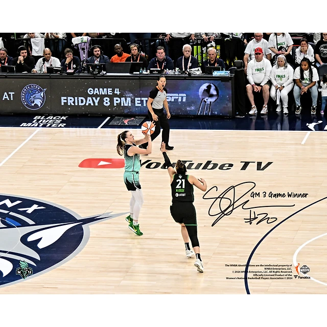 Photographie autographiée de Sabrina Ionescu du New York Liberty 2024 WNBA Finals Game 3, 8" x 10", tir à trois points gagnant avec l'inscription "GM 3 Game Winner"