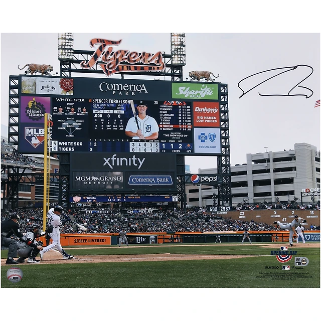 Photographie autographiée de Spencer Torkelson des Detroit Tigers, 16" x 20" lors de sa première apparition au bâton