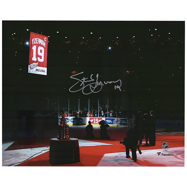 Photographie autographiée de Steve Yzerman des Red Wings de Detroit lors de la soirée de départ à la retraite du maillot 16" x 20"