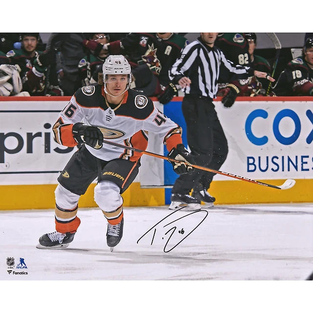 Photographie autographiée de Trevor Zegras pour ses débuts dans la LNH, 16" x 20"
