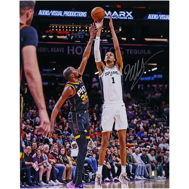 Photographie autographiée de Victor Wembanyama des San Antonio Spurs 16" x 20" lors du tournage contre Kevin Durant