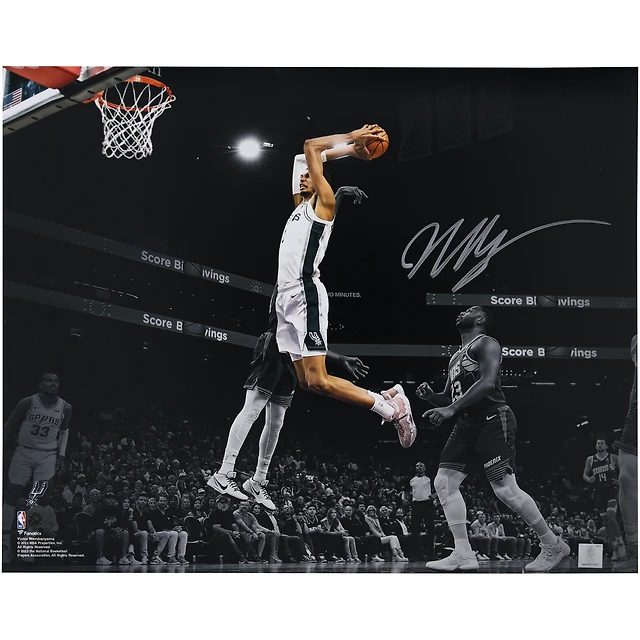 Photographie autographiée de Victor Wembanyama du match Dunk contre les Phoenix Suns entre les San Antonio Spurs et les Phoenix Suns 16" x 20"