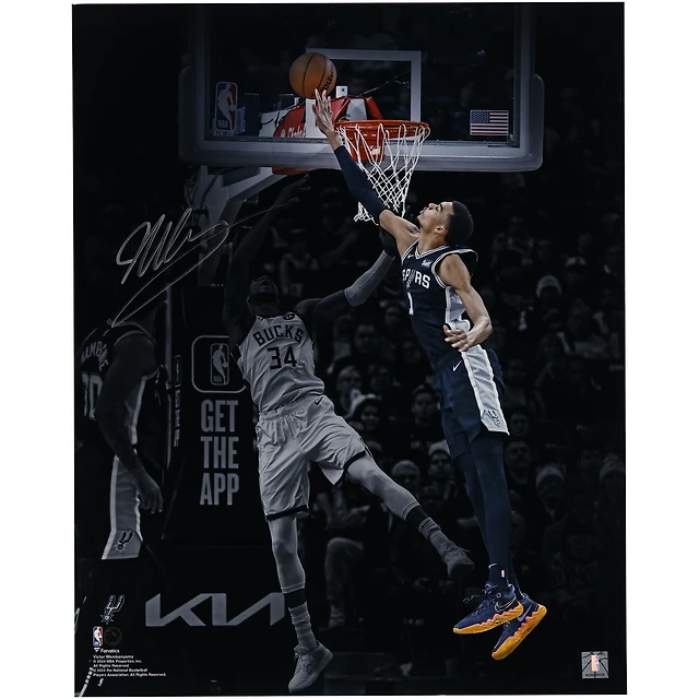 Photographie autographiée de Victor Wembanyama San Antonio Spurs 16" x 20" contre Giannis Antetokounmpo