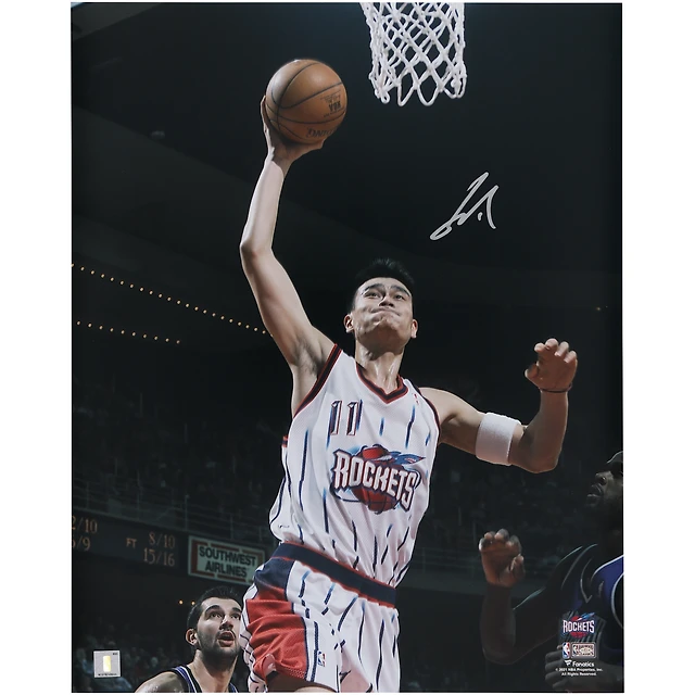 Photographie autographiée de Yao Ming des Houston Rockets 16" x 20" du Dunk contre les Sacramento Kings