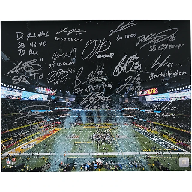 Photographie autographiée des Philadelphia Eagles, 16" x 20" du Super Bowl LIX, avec 15 signatures et inscriptions multiples - Édition limitée à 25 exemplaires