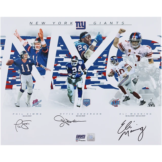 Photographie de collage des MVP du Super Bowl dédicacée par Eli Manning, Phil Simms et Ottis Anderson des New York Giants (16 x 20 pouces)