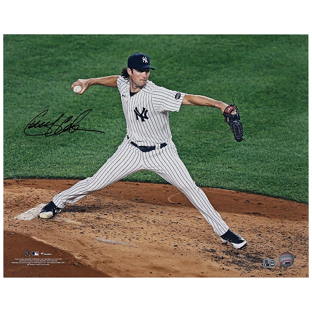 Photographie de Gerrit Cole, vue latérale, dédicacée par les Yankees de New York, 16" x 20"