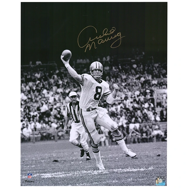 Photographie de passage en noir et blanc dédicacée de 16" x 20" par Archie Manning des New Orleans Saints