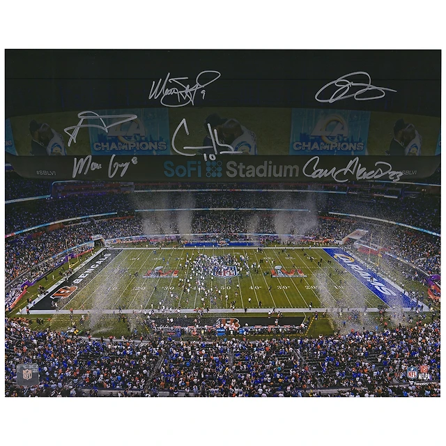 Photographie dédicacée des Los Angeles Rams pour le Super Bowl LVI, 16'' x 20'', avec plusieurs signatures - Édition limitée à 156 exemplaires
