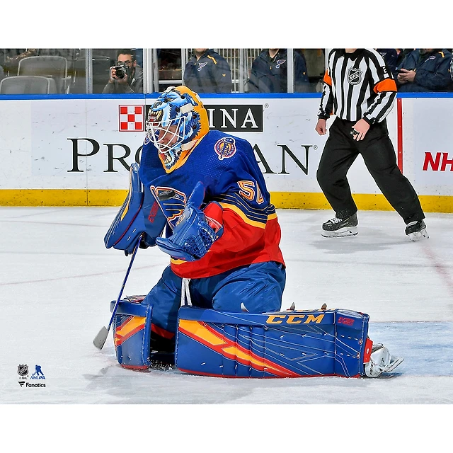 Photographie du maillot alternatif non signé de Jordan Binnington des St. Louis Blues