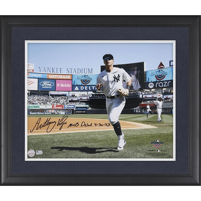 Photographie encadrée autographiée de 16" x 20" d'Anthony Volpe des Yankees de New York avec l'inscription "MLB Debut 3-30-23"