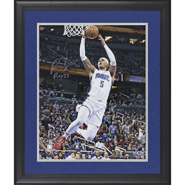 Photographie encadrée autographiée de 16" x 20" de Paolo Banchero Orlando Magic en blanc Photographie encadrée autographiée de 16" x 20" de Paolo Banchero en blanc