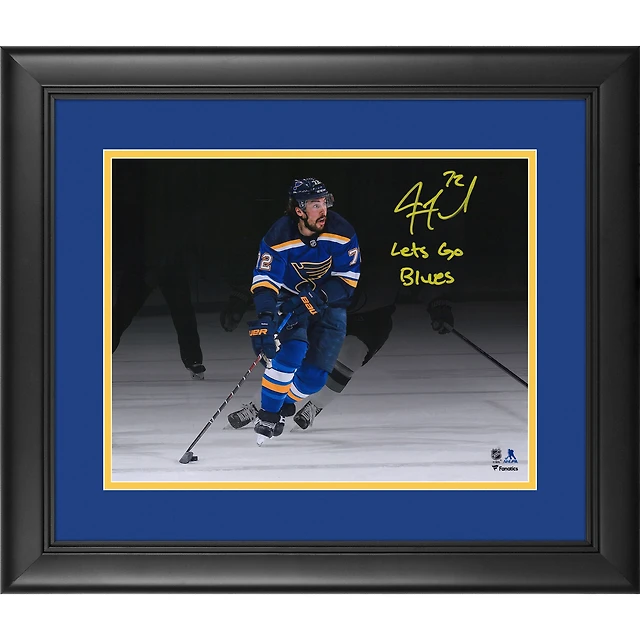 Photographie encadrée autographiée de Justin Faulk St. Louis Blues 11" x 14 " avec inscription " Let's Go Blues " - Édition limitée à 20 exemplaires