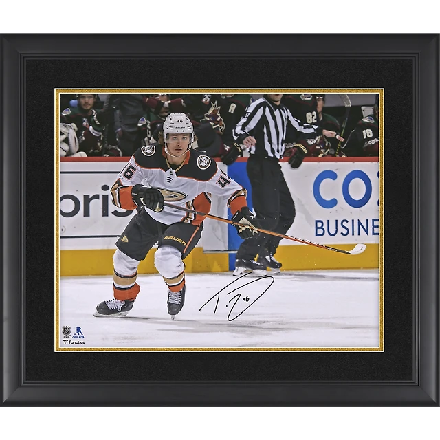 Photographie encadrée autographiée de Trevor Zegras pour ses débuts dans la LNH, 16" x 20"