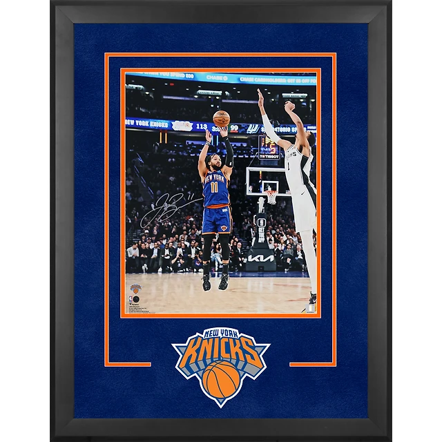 Photographie encadrée de luxe autographiée de Jalen Brunson, New York Knicks, 16" x 20" lors du match de tir contre Victor Wembanyama