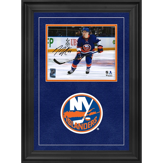 Photographie encadrée de luxe autographiée de Jean-Gabriel Pageau, maillot bleu des Islanders de New York, 8" x 10"