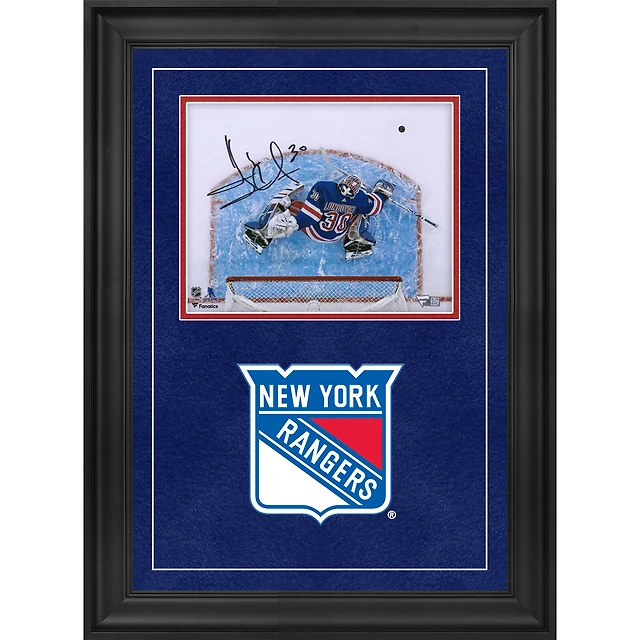 Photographie encadrée de luxe autographiée par Henrik Lundqvist des Rangers de New York, maillot bleu, 20 x 25 cm