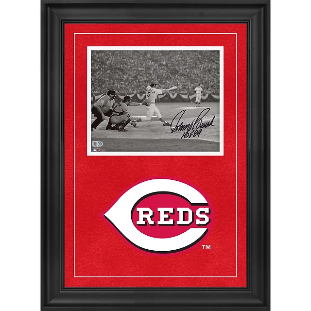 Photographie encadrée de luxe dédicacée de Johnny Bench des Cincinnati Reds en noir et blanc de 8'' x 10'' avec l'inscription "HOF 89"