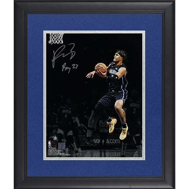 Photographie encadrée dédicacée de Paolo Banchero, Orlando Magic, 11 x 35 cm, avec inscription « ROY 23 ».