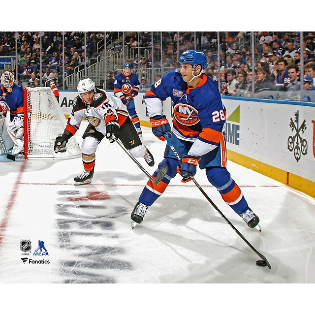 Photographie non signée d'Alexander Romanov des Islanders de New York contrôlant la rondelle