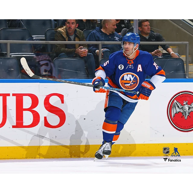 Photographie non signée de Cal Clutterbuck des Islanders New York en train patiner sur la glace
