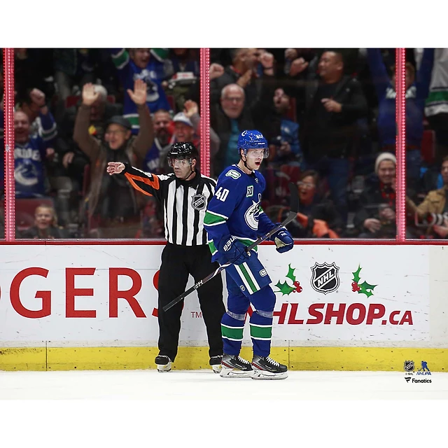 Photographie non signée de célébration but des Canucks Vancouver par Elias Pettersson