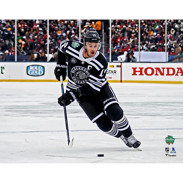 Photographie non signée de Jonathan Toews des Blackhawks Chicago lors la Classique hivernale LNH 2019