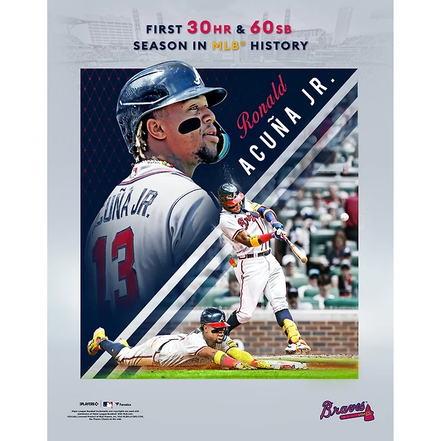 Photographie non signée de Ronald Acuña Jr. des Braves d'Atlanta avec 30 circuits et 60 buts volés