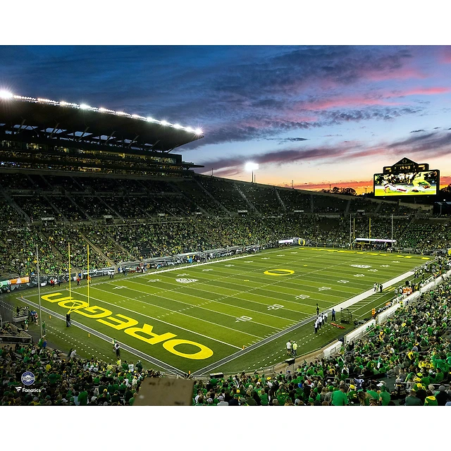 Photographie non signée des Ducks de l'Oregon au coucher du soleil stade Autzen