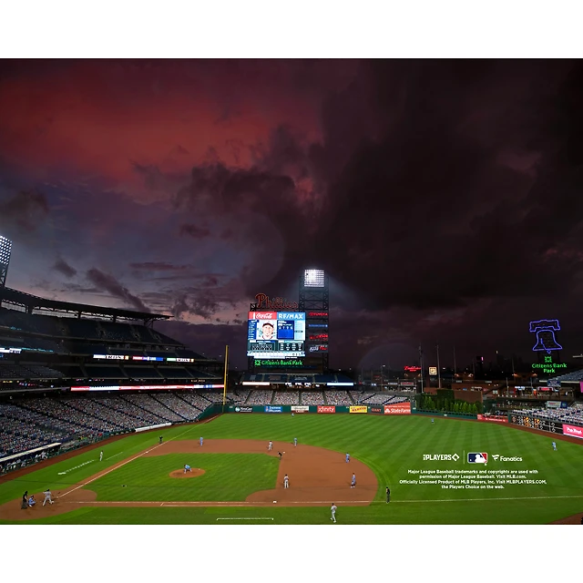 Photographie non signée des Philadelphia Phillies, vue nocturne de la ligne base du Citizens Bank Park