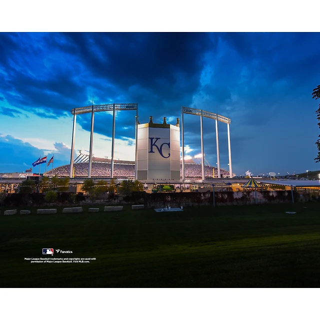 Photographie non signée du stade Kauffman des Royals de Kansas City à l'extérieur au coucher soleil